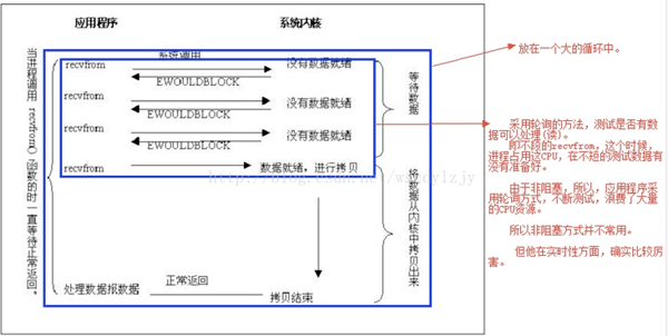 2.非阻塞型:如果没有数据buffer,则立即返回EWOULDBLOCK
