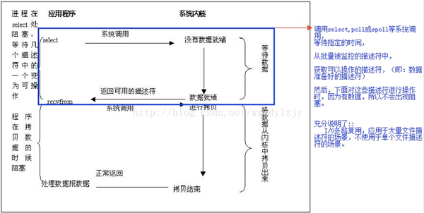 3.I/O复用型(select和poll):在wait和copy阶段分别阻塞