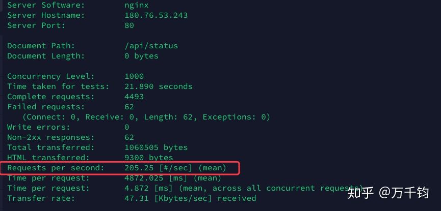 这个api设计之初是给nginx负载均衡做健康检查的. 使用ab -n 100000 -c 1000 进行压测, 发现qps只能到140个每秒.