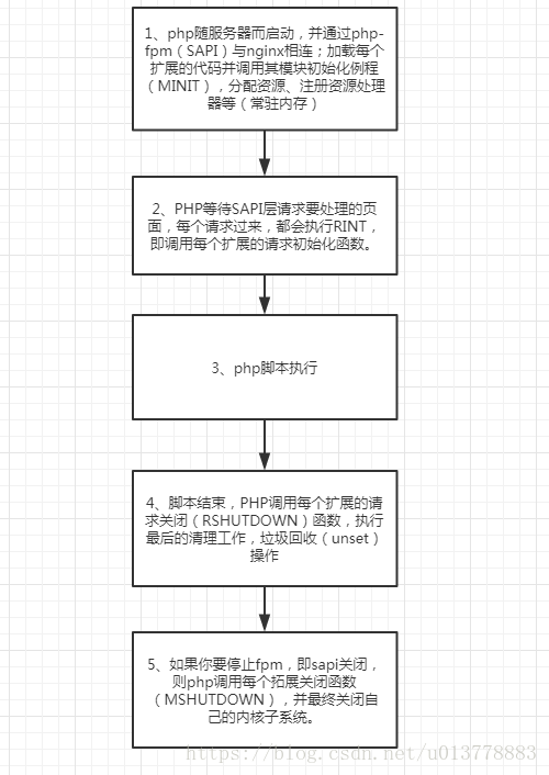 (4) 这个php-fpm是php这一端遵循fast-cgi协议与web server进行通信的服务,这样请求就到了php这一边。