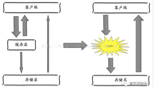 因为缓存层承载了大量的请求,有效的保护了存储 层,但是如果缓存由于某些原因,整体不能够提供服务,于是所有的请求,就会到达存储层,存储层的调用量就会暴增,造成存储层也会挂掉的情况。缓存雪崩的英文解释是奔逃的野牛,指的是缓存层当掉之后,并发流量会像奔腾的野牛一样,大量后端存储。