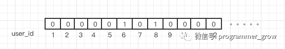 先分析一下思路,对于某一天来说,我们可以把这一天想像成一根小木棍,分成了不同的段落,每个段落对应的就是用户的位(因为有user_id),默认值都是0,只要有人登陆了,就把对应的用户的位置标为1即可。